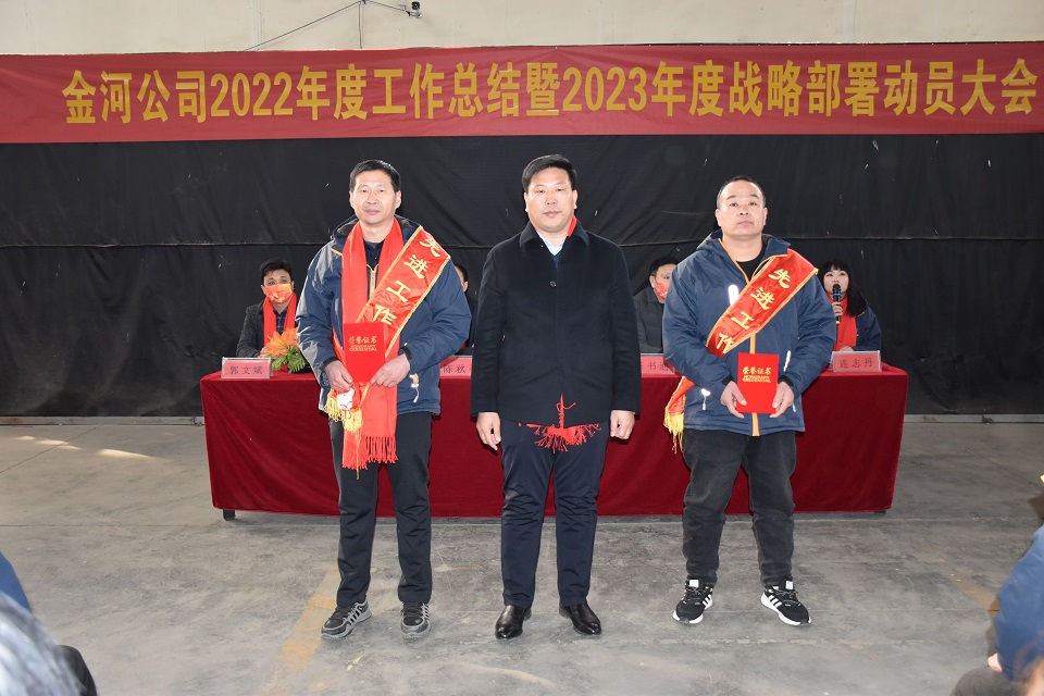 9:00分繼續(xù)進(jìn)入“金河公司2022年度工作總結(jié)表彰暨2023年度戰(zhàn)略部署動員大會“,全體員工參加,公司高管與副總落座主席臺,會議包括表彰與總結(jié)兩項,表彰2022年度優(yōu)秀模范,號召全體員工向他們學(xué)習(xí),首先頒發(fā)”援產(chǎn)模范“,由生產(chǎn)副總劉海峰頒獎;”援產(chǎn)干將“獎項由公司黨支部書記、總經(jīng)理陳文通親自頒發(fā)。最后陳總做總結(jié)講話,回顧2022年走過的艱辛,感謝上級黨組織的關(guān)懷與支持,規(guī)劃2023宏偉藍(lán)圖,在美好的2023年打一場漂亮仗!為實現(xiàn)金河夢中國夢不懈努力!